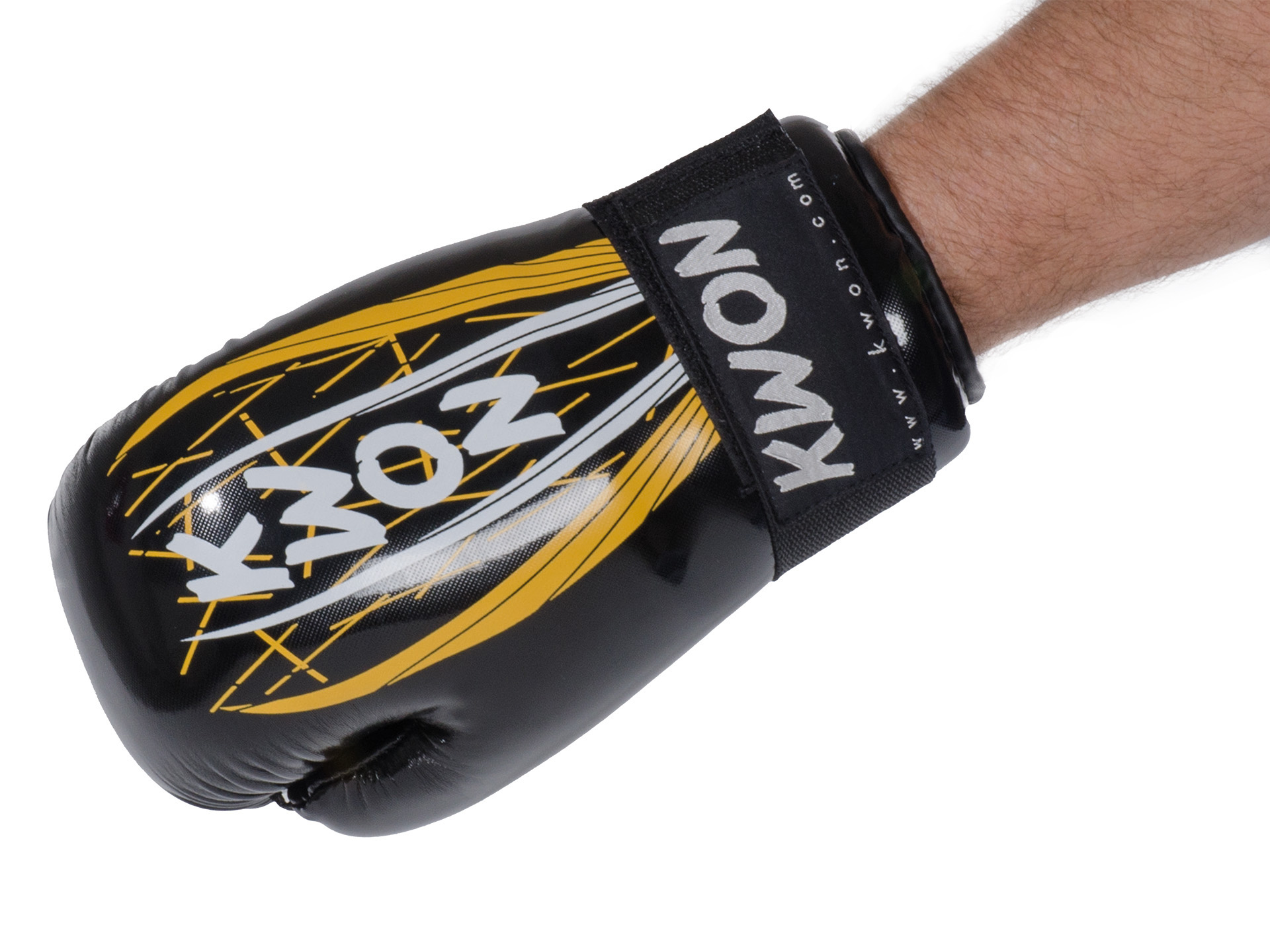 Der Pointfighting-Handschutz aus strapazierfähigem Kunstleder mit vorgekrümmten stabilen Schaumstoffpolster bieten dem Kickboxer hohe Sicherheit und hohen Tragekomfort.