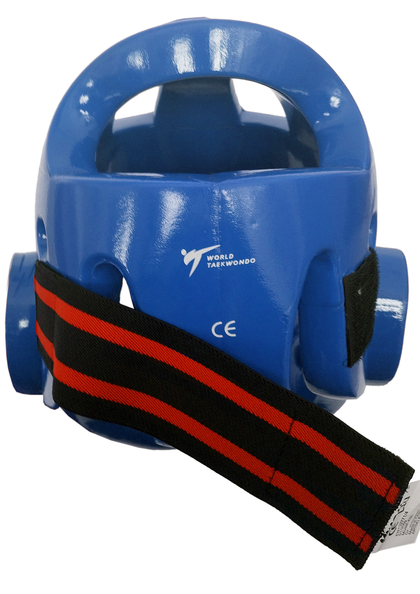 Die Kopfschützer in den Farben rot und blau sind offiziell vom Taekwondo-Weltverband WT (World Taekwondo) anerkannt.