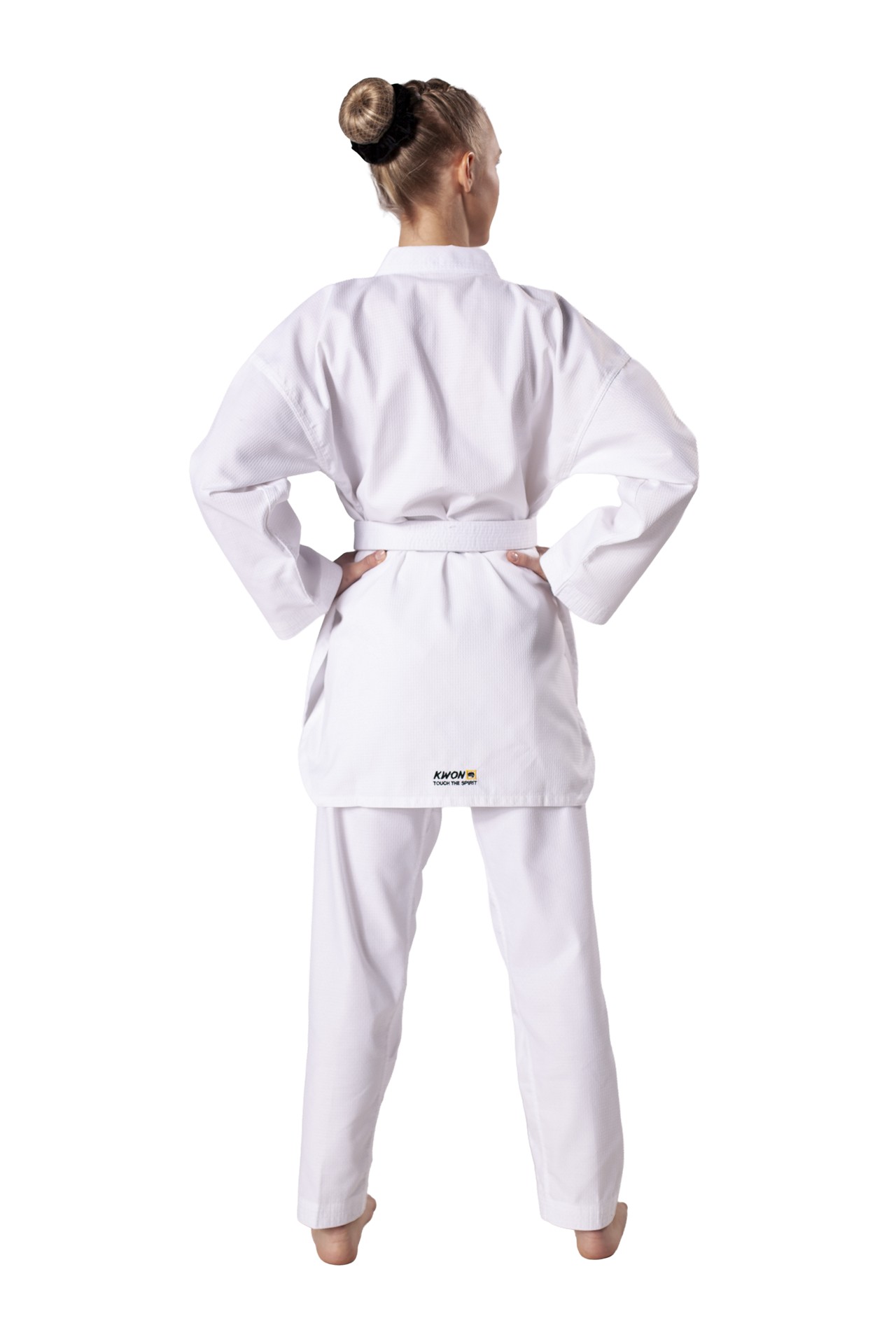 Eingewebte KWON Logos auf Brust oder linkem Arm und linkem Bein. Sämtliche Anzüge der Starfighter Serie sind erkennbar am schwarz / weißen " Competition approved " Brustlogo.
