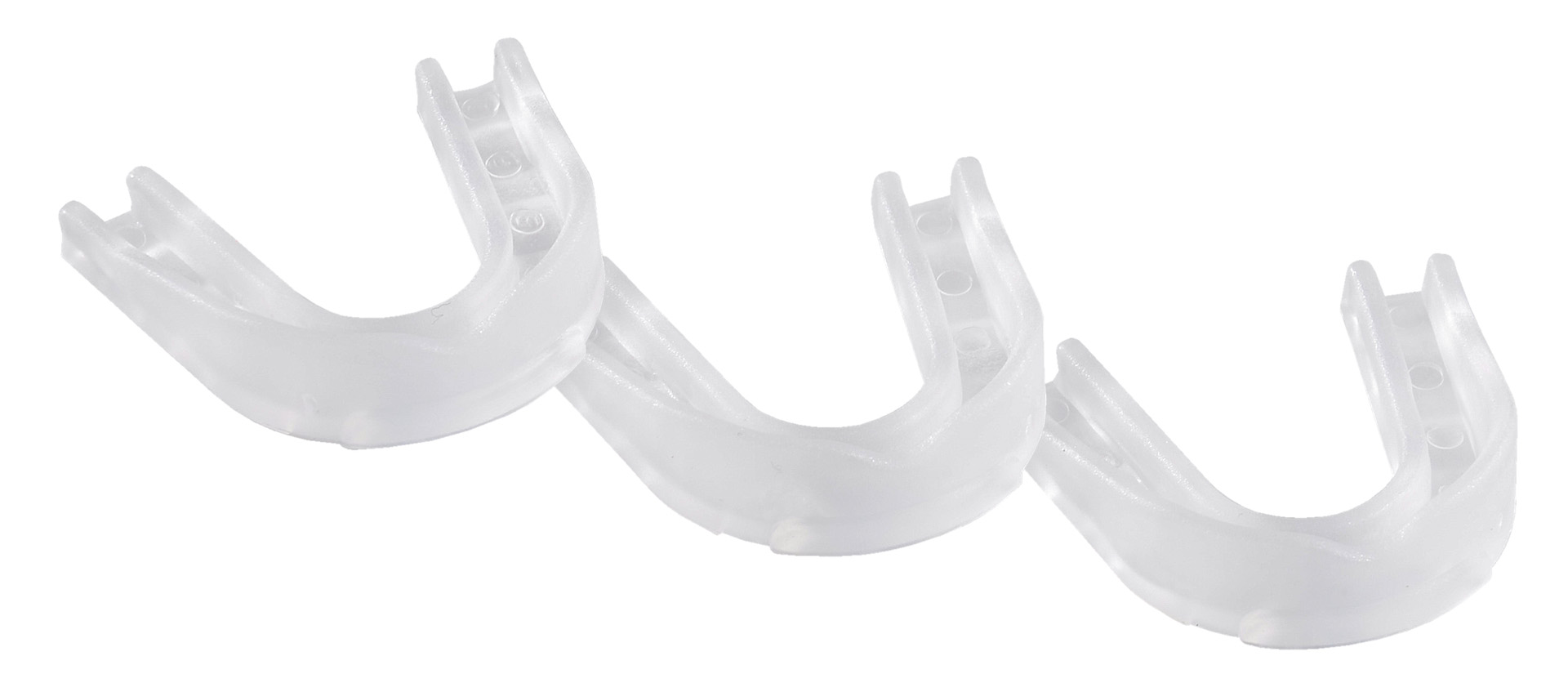 Anpassung: Zahnschutz in heißes Wasser legen, drauf beißen und in kaltem Wasser aushärten lassen - fertig!