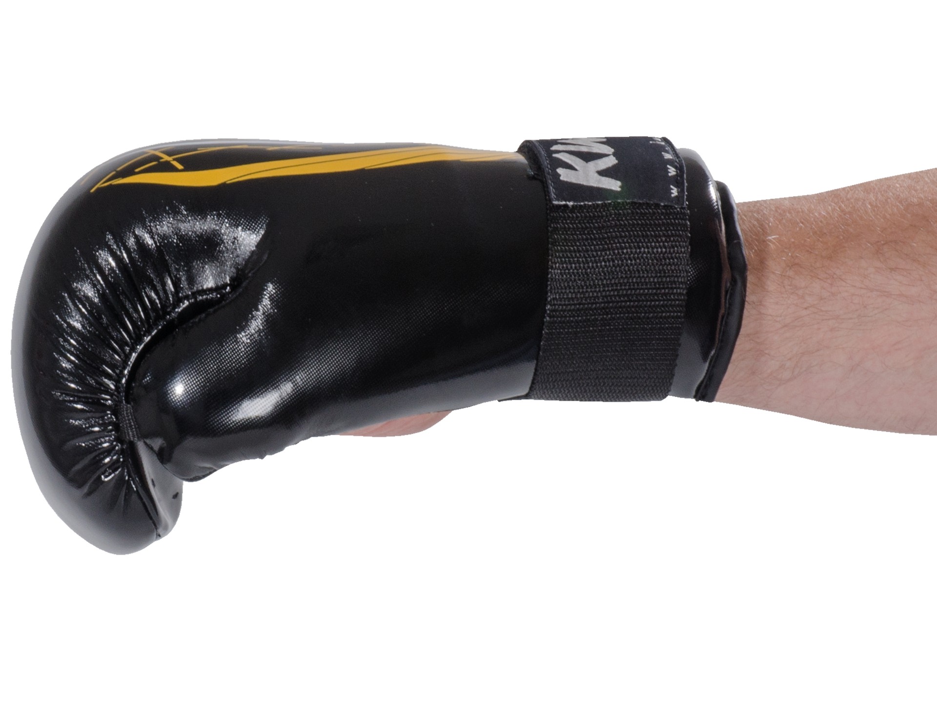 Mit dem breiten Klettverschluss lässt sich der Handschutz genau an das Handgelenk des Pointfighter anpassen.