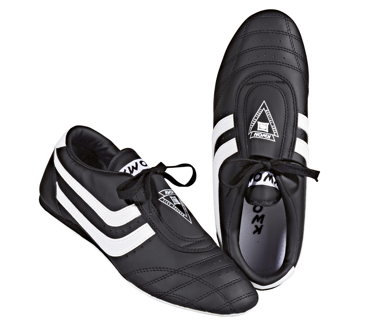 - Der klassische KWON Indoor-Trainingsschuh für Einsteiger besitzt eine dünne, elastische Gummisohle sowie eine hochgezogene Ferse und Ventilationslöcher.