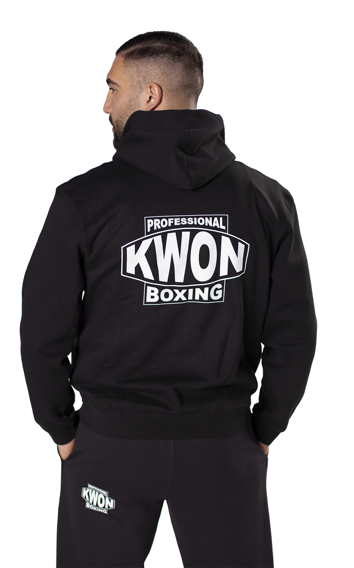 - Hochwertiger Kapuzenpullover mit großem KWON PROFESSIONAL BOXING Druck auf dem Rücken und kleinem Brustdruck auf der Vorderseite.